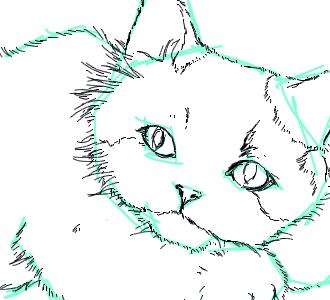 見本を見ながら、主線の当たりを取って(水色の線)、大まかに形付け。