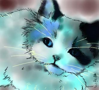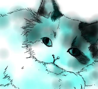 強調したい毛の流れや、瞳の虹彩の部分、からだの重なった部位などを、立体感を現すように、描き込んでいく。