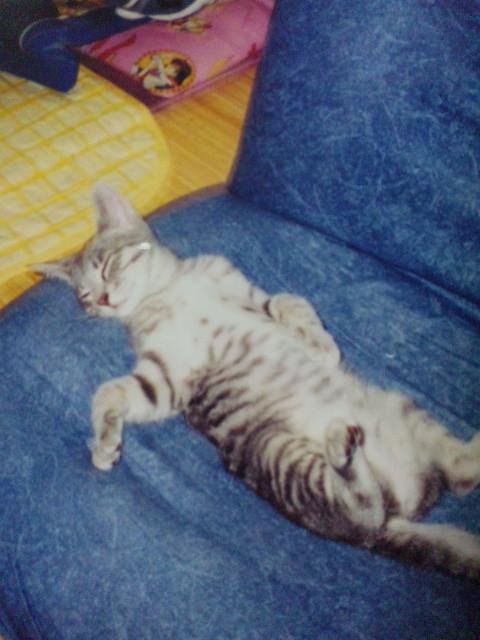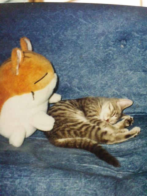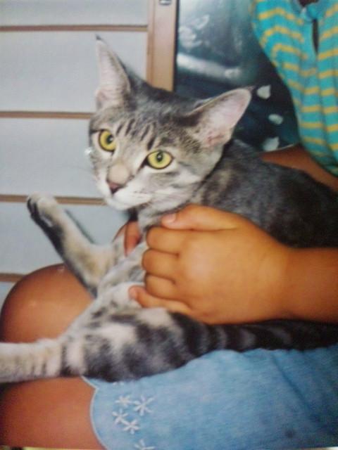 10年前、何げに娘と二人、ショッピングセンター内のペットショップに入ったところ「もらって下さい・4月生まれ」との貼り紙のケージの中で暴れることなく、鳴くこともなく、ず~~~と下をうつむいて「しょぼぼ~~~~ん」と丸くなっていた仔猫。
