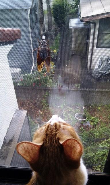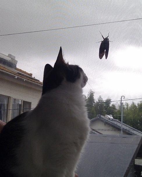 網戸とガラス戸越しですから、ざんねんながら手がでません(^^)