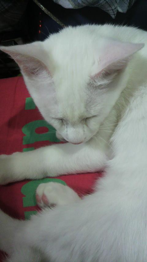 パパから今日は、会社から帰るのが遅くなるよと電話があり。ママはさらに寝る。気が付くともう午後。パパからお昼ご飯を買ってきてもらった物を食べまたベッドへ。少しして目を覚ましたらアロハが私により沿って寝てくれてました。目が覚めると一緒に起きて優しく手をなめてくれました。