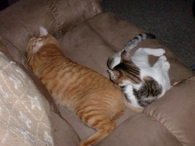 そしてこちらは一人掛けソファにて。ほんと仲がいいんです。
