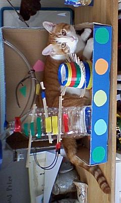 息子の夏休みの工作『ビー玉ジェットコースター』の中に入っちゃった。
