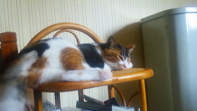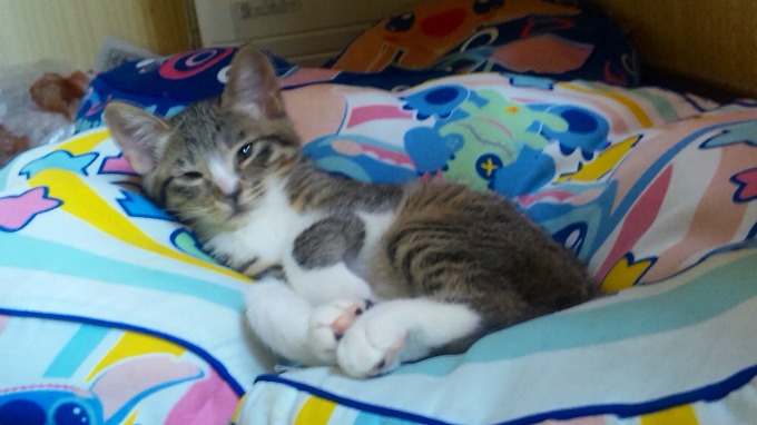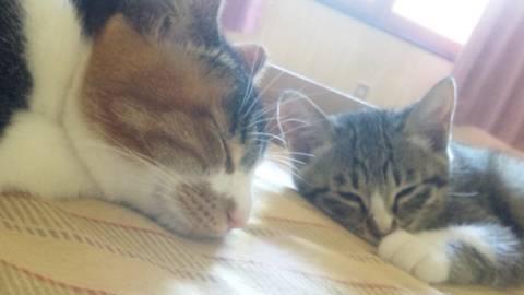 そのあとみんなでお昼寝したら、ミーナちゃんもトイレに四日飼ってひと眠りしていました。