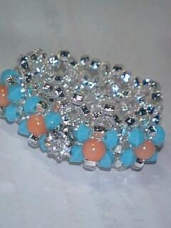 珊瑚とターコイスカラーを、シルバーでまとめました。