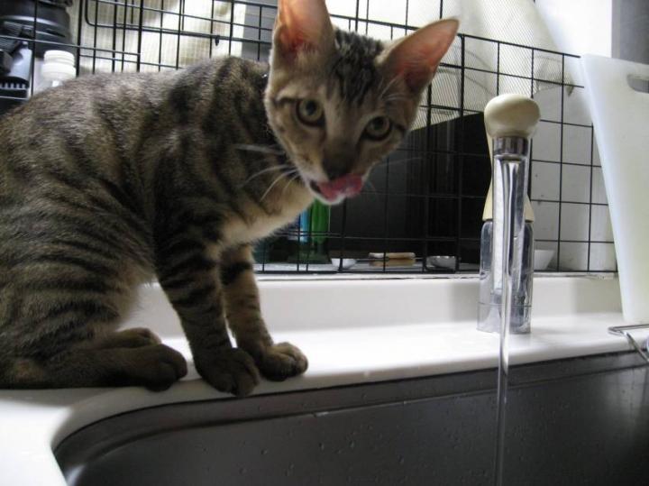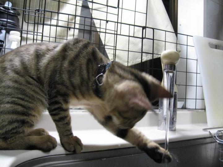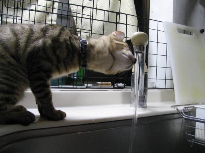 水を飲む為、口を近づけます。