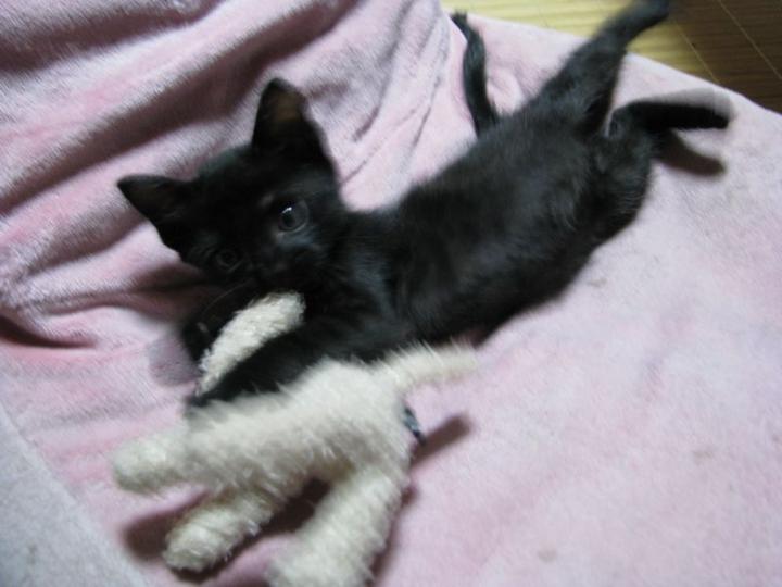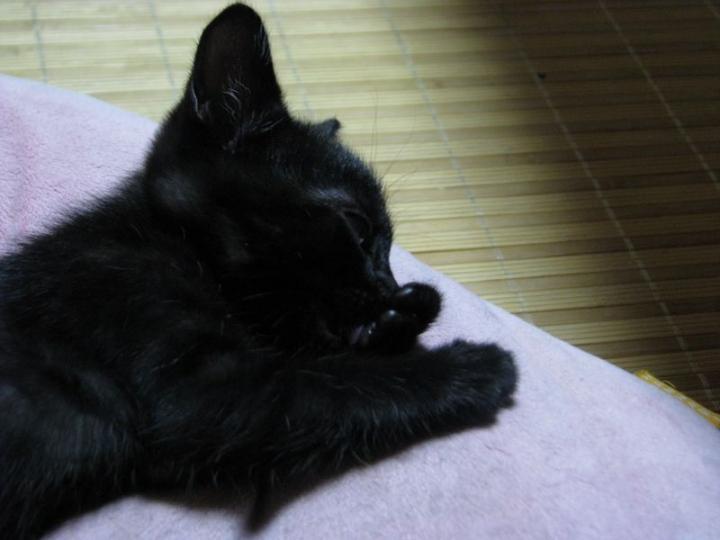 夜中に2回ほど、一人運動会を開いては、みんなの足を噛みちらし、体を踏みちらし、頭を蹴りちらして、大興奮。