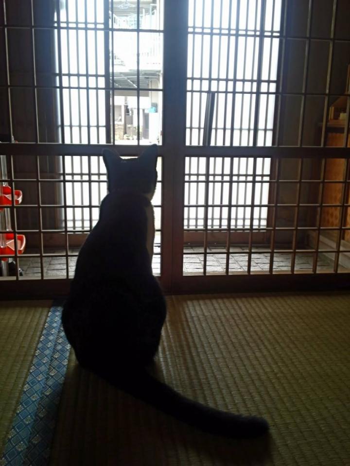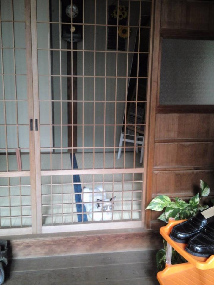 玄関を開けると又、ドコドコドコ.....格子戸の前で