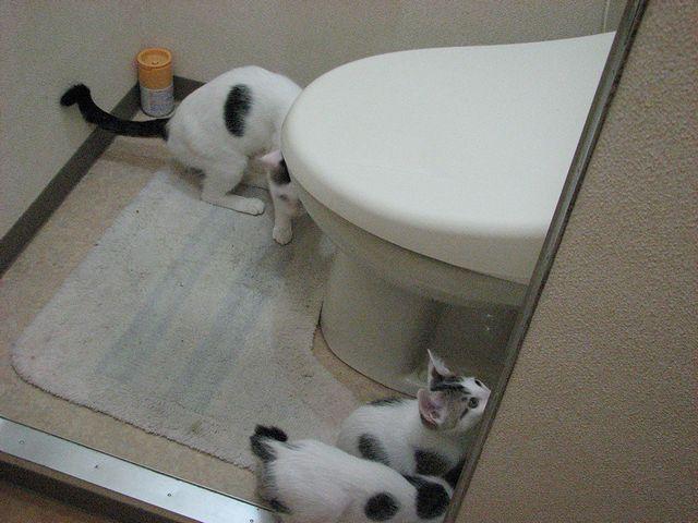 もちろん、子猫たちは、ドアが開いたら中に入ろうと待ち構えているわけです。