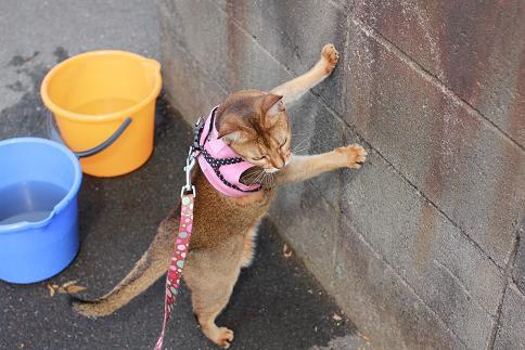 あちこち見て回りたいけど怖いらしく、結局は外でもニャーゴ・ニャーゴと