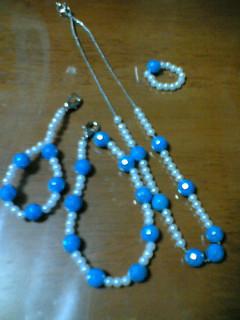 今まで不器用でビーズなんて手をつけたことがなかったのですが、でもなんとなく見ていると私にも出来そうかなと思えて、青のビーズ・白のビーズ・ワイヤー・部品を購入しました。