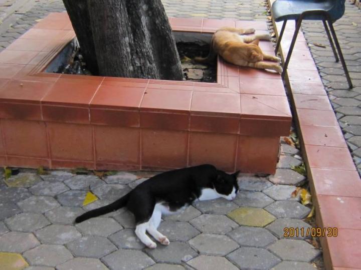 タイは野良猫より野良犬の方が多いそうです。実際犬をよく見かけました。アユタヤ遺跡の上でも普通に歩いてるの。