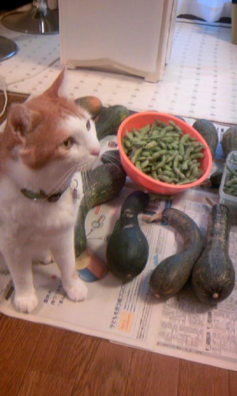 午前中、ねこりな旦那様が畑に行って、たくさん収穫してきてくれました。