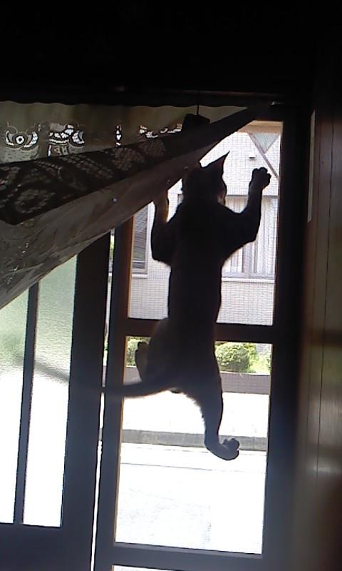 網戸に駆け上がるのが好きになってしまって大変な図
