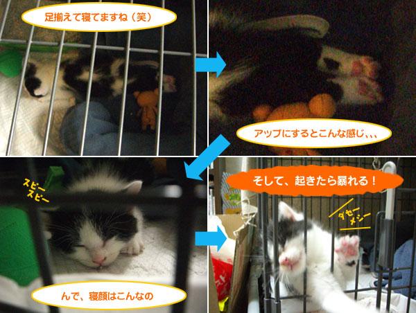 それからそれから、離乳食をたくさん食べるようになってから(特にカリカリのほう)食べ終わると、顔がビショビショになるくらい涙を流しているので、目の病気でもあるのかしら?と思って、日曜日に病院に連れて行きましたが、とくに目の病気もなく、ついでにしてもらった便の検査も問題ナシ。耳の中も綺麗だし、ノミもいないし、野良猫だったとは思えないくらい綺麗だとか。