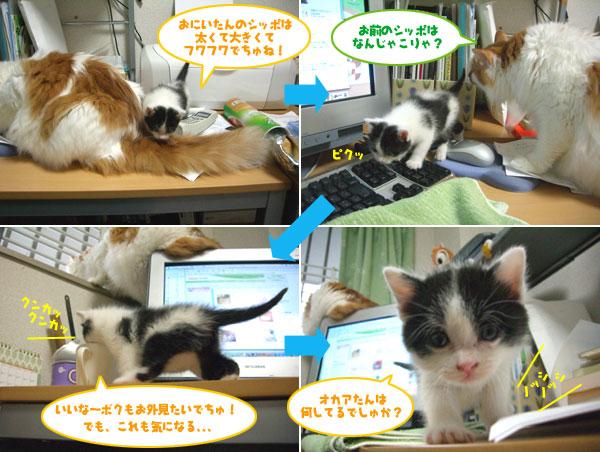 「でも、チーたん?あなたは、フワフワのしっぽ兄さんと違って、大きくなったら普通の何処にでもいる日本猫だからね、今のうちに十分チヤホヤされてなさいなっ(* ̄m ̄)プッ」ってな事を言ってみたり(笑)