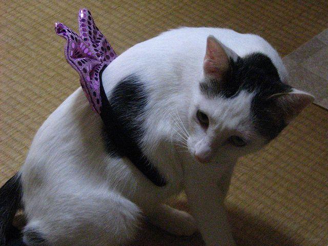 娘が貰った手作り(たぶん)カチューシャで、ちょっとドットに悪戯。