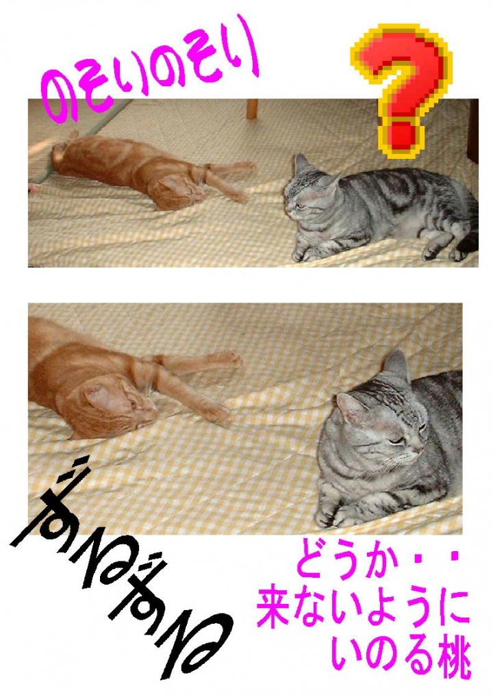 桃は、はっちが恐いのか?いつも近くに寄ると「シャァ~」と脅かします(^_^;