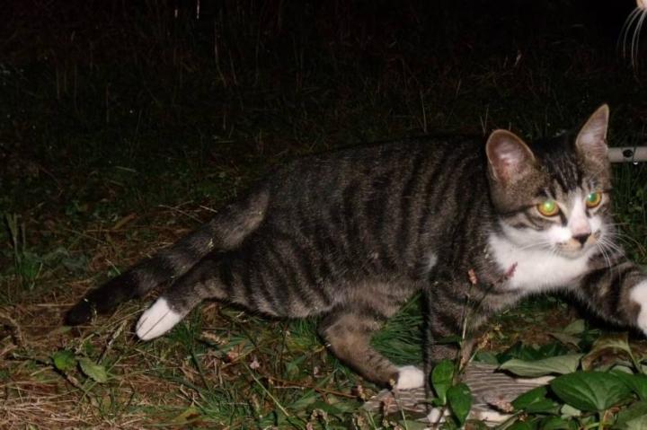 ここ1ヶ月、外が暗くなると出没する猫がいて、何とか写真に収めたいと思って成功した写真が↓です。