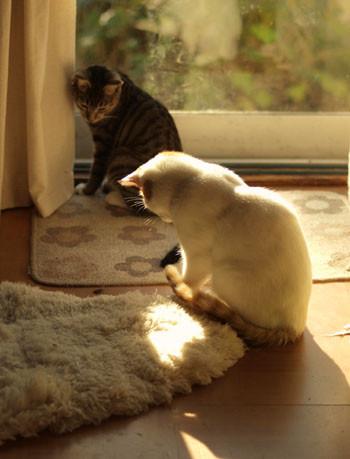 窓辺でお日様あびながらちいさな虫に目が釘付け・・・
