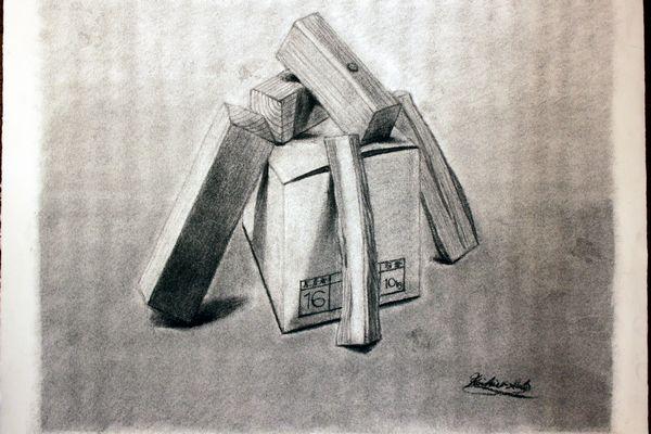 今日は、先日から描いていた木炭の静物デッサンが描き終わりました。