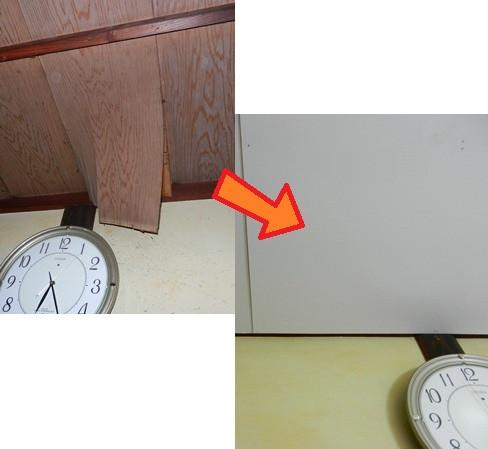 天井も例外ではなく、ベニヤ板の長方形が合わない。