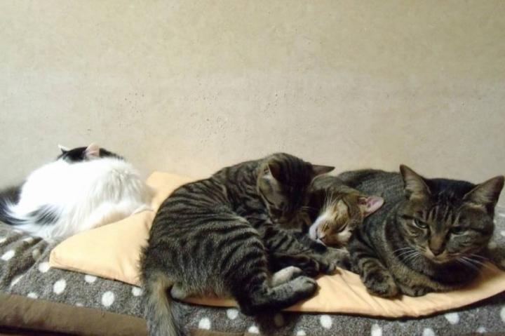 体温の高い猫ちゃん達がねこ団子を作ってたら、その暖かさにはかなわないかもしれないね。