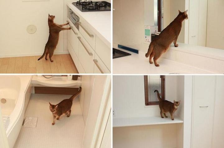 新居に荷物が入り始めた頃に連れて行き、いつもの2階建てケージに移動。