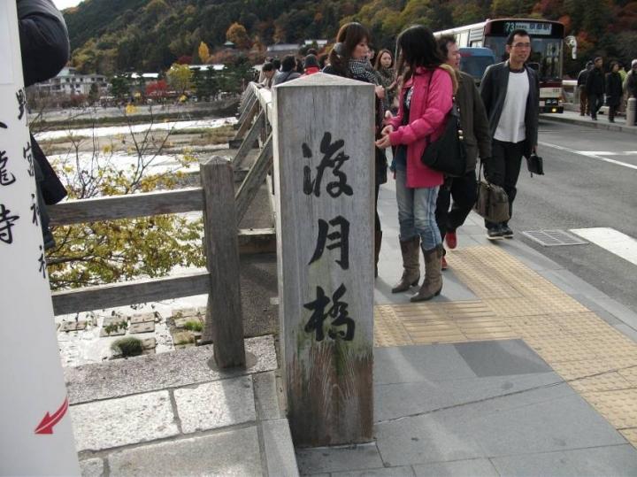 京都の路面電車“嵐電”の嵐山駅をでると、すぐ前は渡月橋にでられる嵯峨街道でした。
