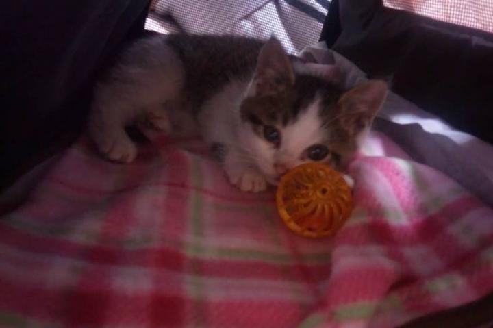 ご飯を食べて、トイレも済ませ、猫じゃらしとボールで遊んだらネンネ~