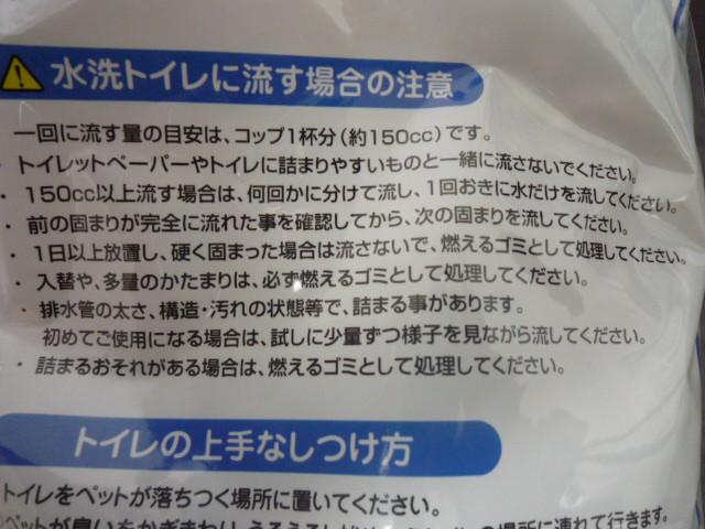 …(;゚Д゚)エッ!?コレ意味なくね?一日一回トイレの片付けをするとして、おしっこだけで4~6個の塊りが、ウンチも入れるともっと出るんですけど・・・塊り1個流すたび1回ジャ~って流せってか?これ普通に一般ごみで捨てた方が早いんじゃない?
