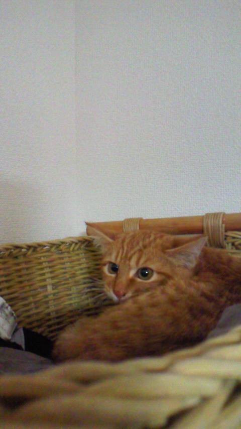 最近、このワインセラーの上にたまたま置いたかごの中がお気に入り。