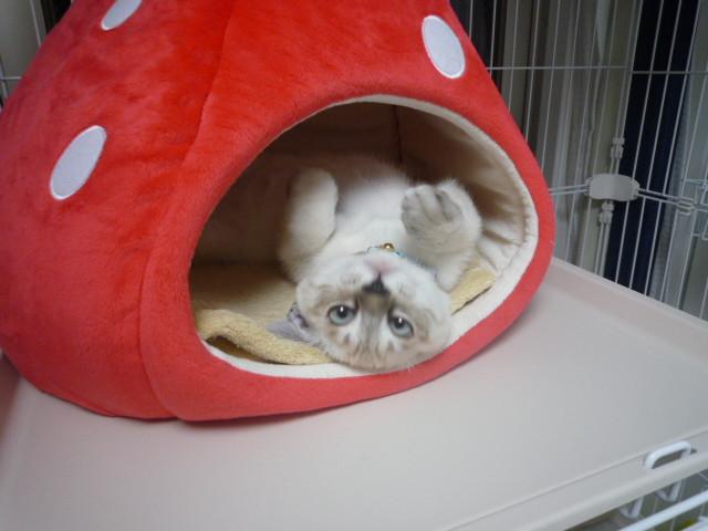 うちではボックスタイプに湯たんぽを入れて、保温対策していましたが、11月中旬は暖かい日が続き暑かったようで、ボックスの上に乗っかって寝転んでいる姿をよく見かけました。ですので、ここ1~2週間はオープンベッドに湯たんぽをおいて使用していますが、この方式だとちゃんとベッドに納まって寝ています。また寒くなってきたのでイチゴボックスに戻してあげようと思っています。