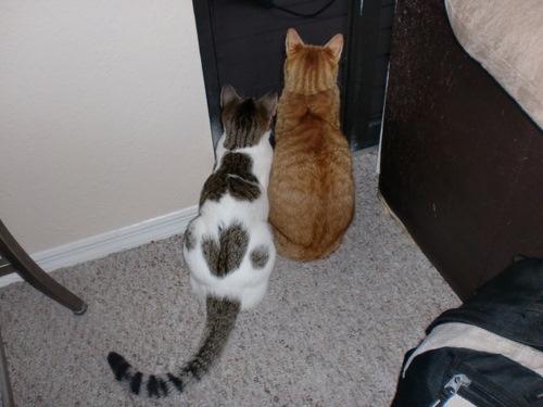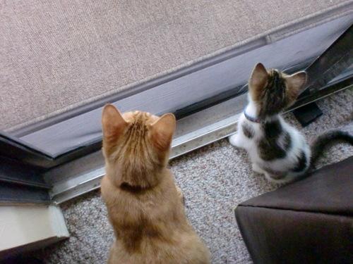 今朝、2匹が並んで外を見ていたので写真を撮りました。