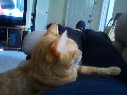 甘えん坊のグレイスに負けずと、ファズは私が横になるとお腹に