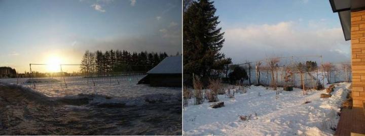 その代わり、今朝などは放射冷却現象で気温が下がり、朝起きたら外真っ白。