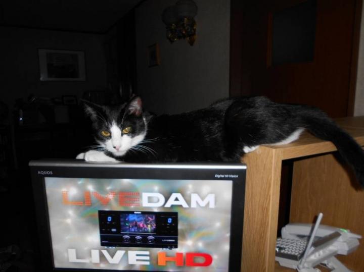 テレビの上は暖かいのか、乗っかって勝手に音のボリュームを大きくしたりチャンネル変えたりしています。(笑)