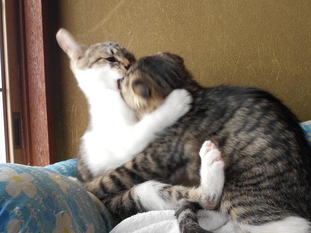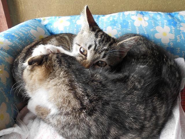 ごはんの後は暖かいベットへ入ってそれぞれ毛繕いし、顔を洗い、お互いを舐め合い眠りにつきます。目を閉じて、気もちよさそうに舐め合いしている猫たちを見ていると、とても癒されます。