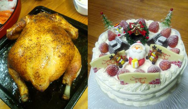 妹特製ローストチキンとチョコのおうちを3つにしてもらったケーキ。