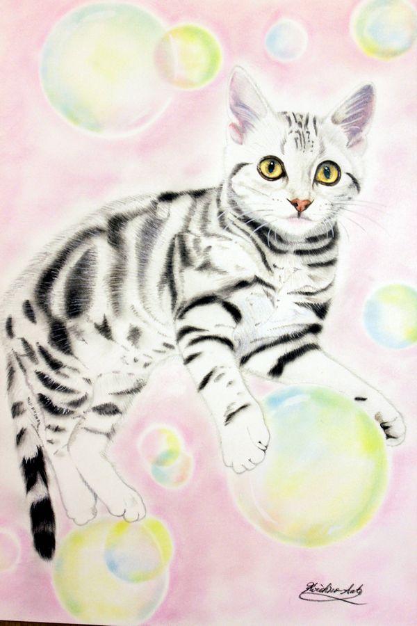 我が家の愛猫メイが生後半年くらいの時の写真を基に描きました。