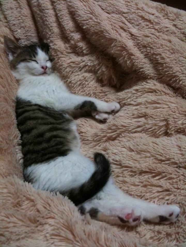思いっきり遊んで、お腹一杯ご飯食べたから眠いんやよ~ 四ヶ月なのに発情しちゃった