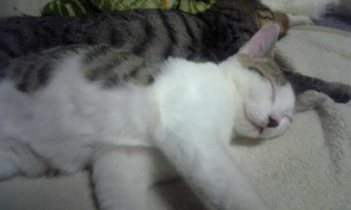 ベロベロしてる白三毛さんはは、これまた保護猫の「アヤメ」さん。