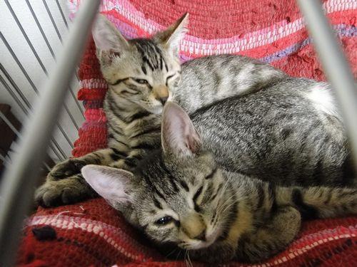 黒系キジトラの「アクア」、茶系キジトラの「マリン」。
