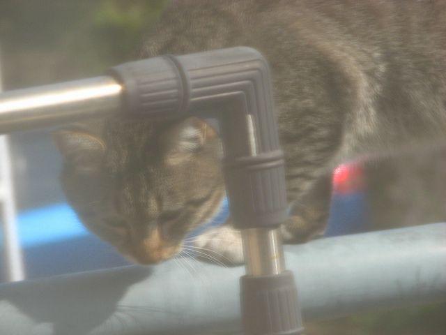 見ると、猫がベランダの手すりに乗っていました。