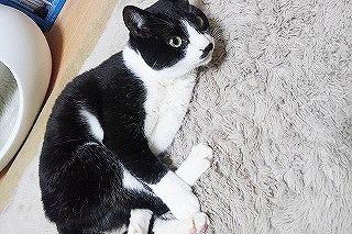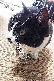 お髭がチャームポイントの黒ベースの白黒ハチワレ。