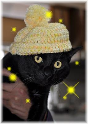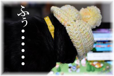 こんなミニサイズの帽子をかぶれる寒がりな人?といったら我が家ではあの人しかおりませぬ。というわけで、抵抗する王子に毛糸の帽子をかぶせて記念撮影してみました。