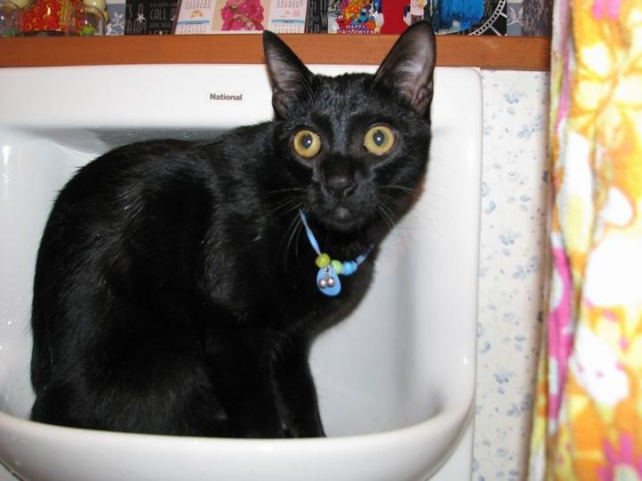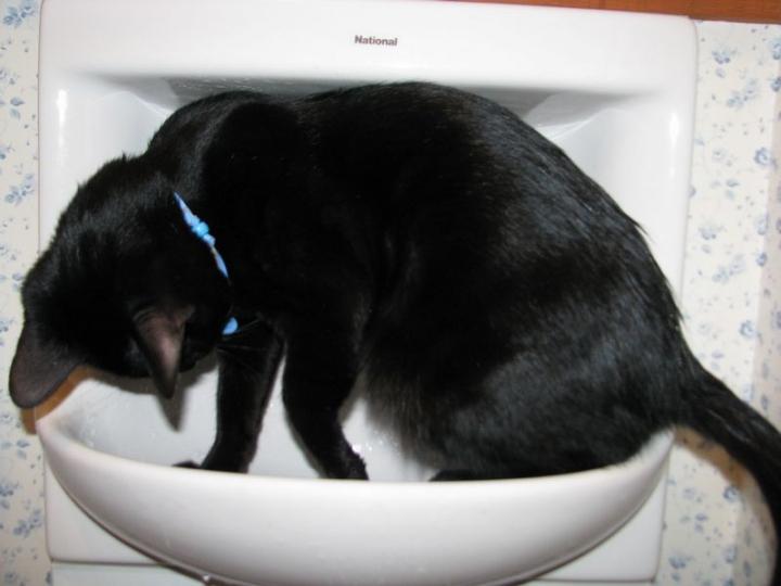 最近ロロ君のブーム、トイレの自動手洗いの水で遊ぶこと。