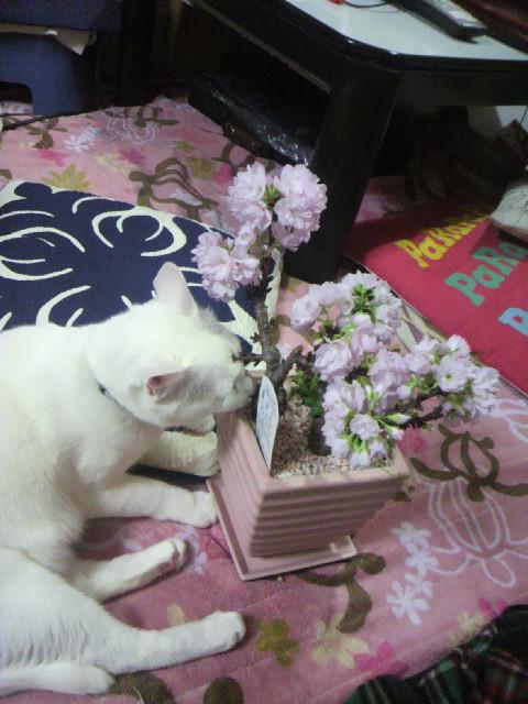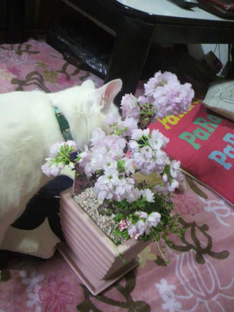 くんくんと匂ってました。本当の桜が咲くのはまだまだ先だけど一足先にお花見です。