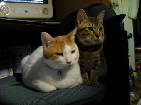 もちろんちびも甘えてやってきますので、右手がちび、左手が金ちゃんと同時グルグル状態です(笑