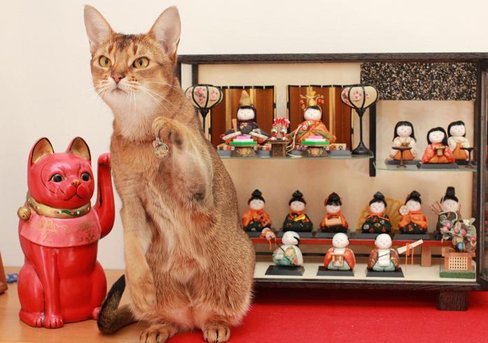 ダブル招き猫~ \(=^ェ^=)(=^ェ^=)/ み~ちょが右手を上げてくれたら